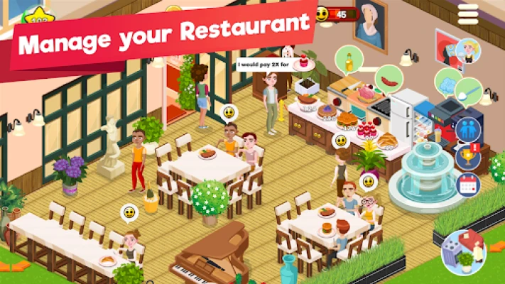 اپنے کاروبار کو وسعت دیں اور اپنے ریستوراں کی جگہ کو بڑھائیں۔ جدید کافی مشین خریدیں اور بہترین بارسٹا ہائر کریں جو آپ کے صارفین کو مسحور کن کافی پیش کر سکے۔ اپنی ٹیم میں تجربہ کار شیف، مددگار ویٹرز اور تفریح کے لیے گلوکاروں کو شامل کریں تاکہ آپ کے ادارے میں ہمیشہ رونق لگی رہے۔ اسٹاف کی مہارتوں کو بہتر بنائیں، اور ان کی مدد سے ایک ایسا پانچ ستارہ ریسٹورنٹ بنائیں جو پورے شہر میں مشہور ہو۔ منفرد اور نایاب کھانے کی ترکیبیں ان لاک کریں تاکہ آپ کا مینیو ہمیشہ تازگی اور جدت سے بھرپور رہے۔