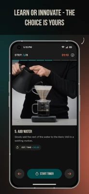 کامل کافی بنانا چاہتے ہیں؟ یہ ایپ آپ کو ہاتھ سے کافی تیار کرنے کے ہر قدم میں رہنمائی کرتی ہے، تاکہ آپ ایک خوشگوار اور بہترین ذائقہ حاصل کر سکیں۔ ہر بار بہترین کپ کافی کا لطف اٹھائیں۔