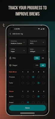 اپنی پسندیدہ کافی کی ترکیبوں کو آسانی سے محفوظ کریں اور دوبارہ کبھی بھی کسی یادگار بِریو کو نہ کھوئیں۔ دی ایپ باریستا آپ کو اپنی تخلیقی کافی ترکیبیں بنانے اور انہیں مستقبل کے لیے لاگ کرنے کی سہولت فراہم کرتی ہے، اور آپ ان سب کو دوستوں اور کافی کے دیگر شوقین افراد کے ساتھ سوشل میڈیا پر آسانی سے شیئر کر سکتے ہیں۔ ایک بدیہی اور صارف دوست انٹرفیس کے ساتھ، آپ اپنی کافی بنانے کی مہارت کو نکھار سکتے ہیں اور ہر بار ایک مثالی کپ سے لطف اندوز ہو سکتے ہیں۔ یہ ایپلیکیشن آپ کو ابتدائی سے لے کر ماہر باریستا تک کا سفر طے کرنے میں مدد کرتی ہے، ہر بِریو کی تفصیلات کو یاد رکھتی ہے اور گھر پر بہترین کافی بنانا آپ کے لیے بے حد آسان بنا دیتی ہے۔
